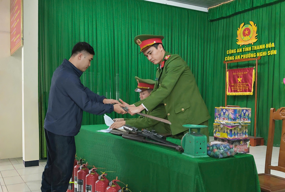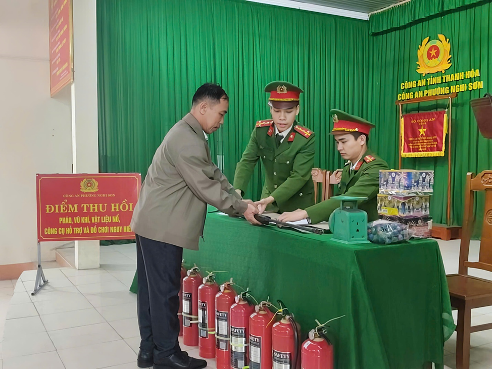 Thiếu tá Hoàng Văn Tuấn, Trưởng Công an phường Nghi Sơn cho biết: Công tác bảo đảm an ninh, trật tự dịp Tết không chỉ đơn thuần là tuần tra, kiểm soát, xử lý vi phạm mà quan trọng hơn chính là công tác phòng ngừa từ gốc. Việc vận động Nhân dân tự giác giao nộp VK, VLN, CCHT và pháo để nhận bình chữa cháy là cách làm thiết thực để vừa hạn chế thấp nhất các “mối nguy hiểm” có thể xảy ra, đồng thời giúp người dân yên tâm đón Tết Bính Ngọ 2026 an toàn, lành mạnh.
