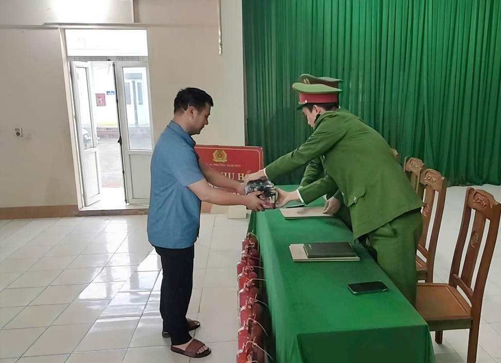 Hình ảnh các cá nhân tự nguyện giao nộp các loại VK, VLN, CCHT, Pháo tại vị trí tiếp nhận
